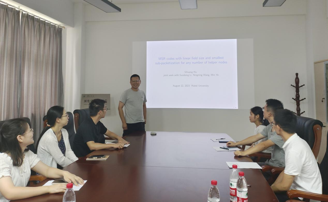 2023年8月22日,山东大学英国365集团公司副经理胡思煌教授应邀为公司密码与编码学团队师生在数统公司403会议室作了题为《MSR Codes with Linear Field Size and Smallest Sub-Packetization for Any Number of Helper Nodes》的学术报告。